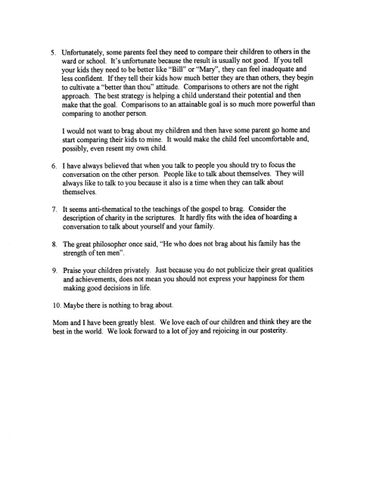 Charity – We must love our children with the same love that the Savior possesses. It is unconditional love. It is a love that motivates “sacrifice of all” for the good of our children. It is a love that says, “I want nothing but the very best for my son or daughter.”