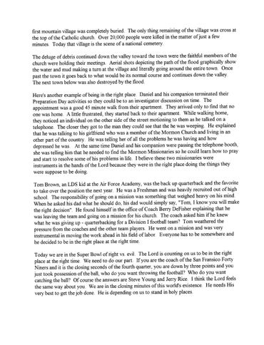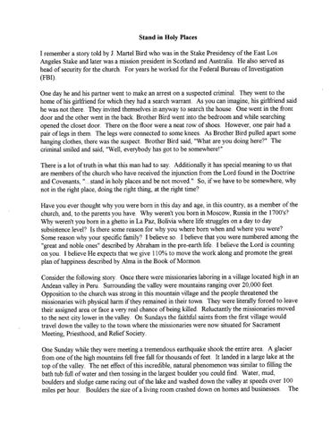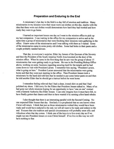 I think of Uncle Gunn and Aunt Jana who serve each week at a Somali refugee center. They also work in the temple as ordinance workers. They sacrifice their time to help in the Kingdom. I think of Grandpa and Grandma McKay who decided long ago that they would tithe the years of their lives in missionary service. I think of Elder Gary Stevenson who could be earning a substantial amount of money in the business world, but instead has heeded the call of the Savior to be one of his chosen servants. I think of each of you that accept callings in the Church and do your best to magnify your callings and bless the lives of others along the way.