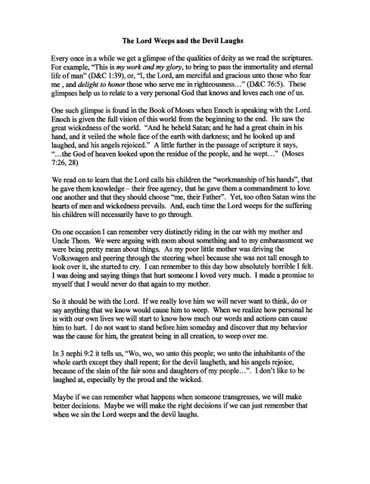 There is a button on virtually every electronic device to power on and allow us to log in. Perhaps we can think of powering on our spiritual OS each morning as we kneel in prayer and seek the Lord’s guidance and Spirit to be with us. We should seek his divine help in assisting us to be obedient. We should ask for strength to sacrifice anything we have or can offer to help build his kingdom. We can ask for guidance to lead us to those who need our help, those we can serve.