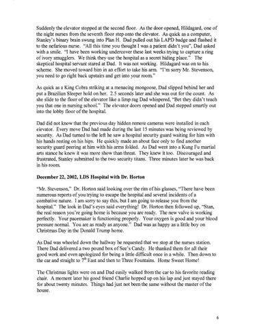 I could hear David ask again, "Dad, are your legs okay?" I do not know how I even moaned the words, "Legs, okay. My tail bone is shattered." Instantly, the boom was up in the air again. Again, it came crashing down. "Dad, did I get your legs?"